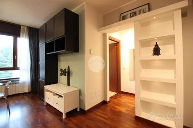Situato in via Don Pino Puglisi 2, a Peschiera Borromeo zona Bellaria. Questo appartamento è arredato con mobili multifunzionali, come letti a scomparsa e divani letto, oltre a tavoli e sedie pieghevoli che ottimizzano lo spazio. La cucina compatta è a vista e integrata con il soggiorno, dotata di piano a induzione completo di pentole. L'arredamento è caratterizzato da mobili leggeri e modulari, con una palette di colori chiari e neutri che rende l'ambiente luminoso e arioso. L'illuminazione strategica, con lampade a sospensione e faretti, crea un'atmosfera accogliente, mentre le decorazioni minimaliste mantengono lo spazio ordinato. Infine, sono presenti soluzioni di stoccaggio intelligenti, come mensole sopra i mobili e armadi a muro, per una maggiore funzionalità. Compresa una grande cantina al piano terreno