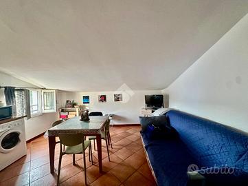 L'ingresso si apre sulla zona giorno con cucina, proseguendo troviamo una camera matrimoniale, un bagno finestrato con vasca e un comodo ripostiglio.