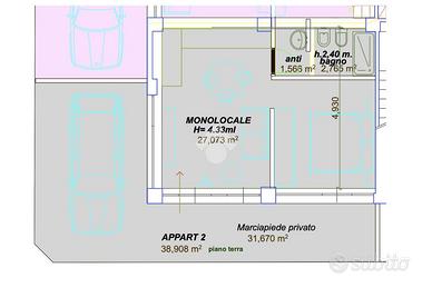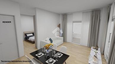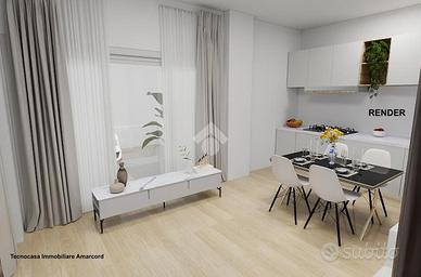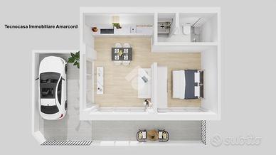 RIMINI - Zona Lagomaggio Proponiamo in vendita un monolocale di nuova ristrutturazione al piano terra con ingresso indipendente e corte esterna privata di 31 mq con posto auto. Ingresso indipendente su luminoso soggiorno con ampia vetrata di 4 m e angolo cottura, dal quale si accede alla camera da letto matrimoniale e al bagno con box doccia. Soggiorno e camera godono di un altezza di 4m garantendo uno spazio luminoso e arioso. Corte esterna privata di 31 mq dove è possibile parcheggiare l'auto. L'appartam verrà consegnato in seguito ad una ristrutturazione completa, interna ed esterna. Sarà in Classe Energetica A e dotato delle migliori tecnologie per il comfort abitativo: riscaldamento a pavimento tramite pannelli radianti a pompa di calore e aria condizionata a pompa di calore con split in zona giorno e zona notte. Dotato di predisposizione per impianto fotovoltaico. Consegna prevista: Giugno/Agosto 2026. Contattaci per maggiori informazioni e per fissare un appuntamento in agenzia! Cel./Whatsapp: