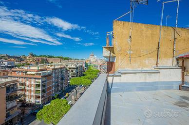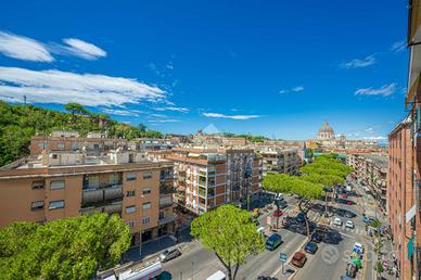 SAN PIETRO - Proponiamo in vendita ultimo piano panoramico con terrazzo e Vista Cupola. Ci troviamo nella suggestiva Via dell'Argilla, a pochi passi da Piazza San Pietro e nella parte più servita da tutte le attività commerciali del quartiere, quali bar, supermercati, posta, scuole, ristoranti, banche, la Parrocchia San Gregorio VII, il mercato rionale di San Silverio, gli Ospedali Santo Spirito e Bambin Gesù e la stazione di San Pietro. L' immobile è posto al sesto ed ultimo piano di un palazzo d'epoca, recentemente rinnovato e dotato di ascensore. L' accogliente ed esclusiva soluzione è composta da ingresso con finestra, cucina abitabile, camera da letto matrimoniale e servizio con doccia e finestra. Ottime condizioni interne, impianto d'aria condizionata caldo/ freddo canalizzato, infissi in pvc dotati di zanzariere, portoncino blindato. Venduto completo di cucina ed arredi. L'abitazione è luminosa e caratterizzata da affacci suggestivi: da tutti gli ambienti principali si può ammirare una splendida vista sulla Cupola di San Pietro e sul verde del Parco Piccolomini. A rendere ancora più esclusiva la proprietà, contribuisce la presenza di un lastrico solare di 33 mq sovrastante l'abitazione, con una vista impareggiabile sulla Basilica di San Pietro, la stessa che si gode da ogni ambiente della casa. Il lastrico è dotato anche di un comodo ripostiglio con allaccio idrico, ideale per creare uno spazio funzionale all'aperto. Un contesto unico che unisce comfort abitativo e scenari mozzafiato. Perché scegliere questo appartamento: * Per la rarità della tipologia, una vera e propria occasione unica nel panorama immobiliare della zona. Un'opportunità irripetibile, pensata per chi è alla ricerca di una residenza esclusiva e fuori dal comune. * Per la presenza dello spazio esterno panoramico fruibile per gran parte dell'anno ideale per momenti di relax all'aperto o semplicemente per godere di una vista straordinaria su uno dei panorami