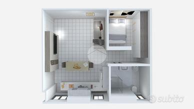 La casa si compone di un ampio soggiorno con angolo cottura, angolo notte e bagno finestrato.