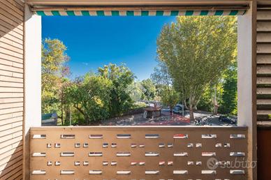 La casa ha una luminosa esposizione ad est, panoramica sul parco, della quale si può godere comodamente seduti in balcone, ove è possibile sistemare un tavolo con 2 sedie.