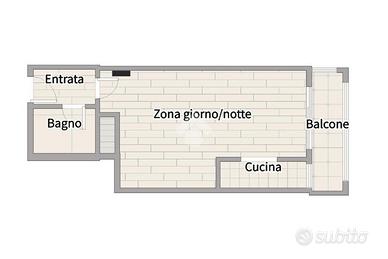 L'appartamento si trova al 2° piano dello stabile e si compone di ingresso con soppalco ad uso ripostiglio, una grande camera con zona giorno/zona notte e balcone abitabile, il cucinotto separato con la propria finestra ed il bagno con doccia e finestra.