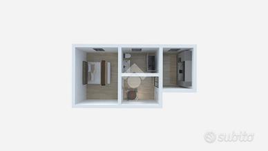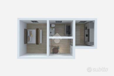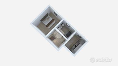 L'immobile è composto da ampio disimpegno, cucina, camera matrimoniale e bagno finestrato con doccia.