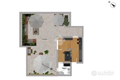 Via Fiume Giallo - Torrino Sud In contesto residenziale, all'interno di un comprensorio riservato e immerso nel verde, l'agenzia immobiliare Tecnocasa Mostacciano propone in vendita monolocale di circa 27 mq, situato al quinto e ultimo piano, con ampia terrazza panoramica di 115 mq. L'immobile gode di ottima luminosità e di una vista aperta, con uno spazio esterno unico nel suo genere, ideale per momenti di relax, pranzi all'aperto o come solarium. Soluzione perfetta come investimento, pied-à-terre o abitazione per chi desidera un attico con grande spazio esterno e massima privacy.