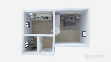 L'appartamento è composto da ingresso, cucina abitabile, ampia camera matrimoniale, e bagno finestrato con doccia.