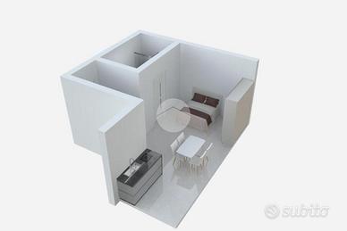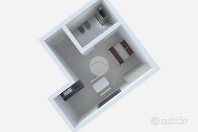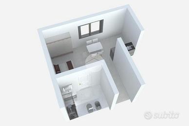 Il monolocale, situato al piano primo e raggiungibile tramite scala interna o ascensore, si presenta completamente arredato di cucina completa di elettrodomestici, una zona pranzo con tavolo e sedie, il letto matrimoniale e bagno comprensivo di doccia. Il riscaldamento è ad aria ed è presente uno split per l'aria condizionata caldo/freddo, infine dispone di attacco TV e connessione internet inclusi.