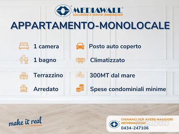 (Riferimento: BR-371-RV) Bibione - Piazza Fontana (Rif. BR-371-RV) 300MT SCARSI DAL MARE | AMPIO MONOLOCALE COMPLETAMENTE ARREDATO E PRONTO ALL'USO | POSTO AUTO COPERTO | CLIMATIZZATORE IN POMPA DI CALORE | LAVATRICE | LAVASTOGLIE | TAPPARELLE ELETTRICHE | SPESE CONDOMINIALI MINIME | ACQUA ED ASCENSORE DISPONIBILI TUTTO L'ANNO! Proponiamo in vendita, nel cuore pulsante di "Bibione Spiaggia" a soli 300mt scarsi dalla spiaggia e con vista diretta su Piazza Fontana, quest'interessantissimo appartamento MONOLOCALE completamente arredato e climatizzato, dotato di ogni comfort per passare al meglio le tue prossime vacanze estive. L'appartamento è situato al 2° e penultimo piano (con ascensore), si sviluppa su 28mq interni ed è così composto: ingresso con accesso diretto alla zona cucina/soggiorno open-space con ampia e comoda nicchia che ospita un'armadiatura richiudibile con letto matrimoniale e divano due posti ed un ulteriore armadio a muro, bagno con box doccia e terrazzino. Completa, al piano terra, il posto auto coperto numerato. L'appartamento permette un'abitabilità immediata ed ha le seguenti dotazioni: lavastoviglie, lavatrice, climatizzatore in pompa di calore (recentemente installato), tapparelle motorizzate e riqualificazione degli impianti elettrici ed idraulici. Le spese condominiali contenute, solamente € 300,00- annue, ti permettono di avere costi di gestione davvero minimi! LA PALAZZINA METTE A DISPOSIZIONE L'UTILIZZO DELL'ASCENSORE E DELL'ACQUA TUTTO L'ANNO! Contattaci e programma il sopralluogo a te dedicato e/o vieni a trovarci presso il nostro ufficio di Bibione in Corso Europa n. 6!