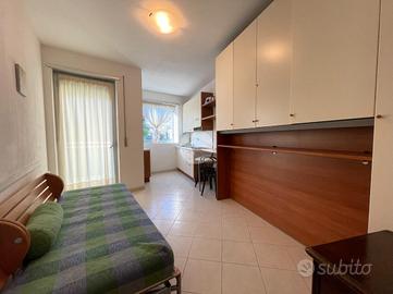 Appartamento situato in una palazzina di recente costruzione, dotata di ascensore. La soluzione è composta da un ingresso su disimpegno. Il soggiorno è ampio e molto luminoso. La cucina è molto pratica e rimane a vista. Il bagno è di generose dimensioni, dotato di doccia ed è presente l'attacco per la lavatrice. Il terrazzino è vivibile, si ha un'importante panorama da cui si possono vedere colline e mare. Tutti gli infissi sono di ultima generazione motivo per cui garantiscono un ottimo isolamento termico e acustico. Tramite l'ascensore si può avere un comodo accesso diretto al garage privato che è molto spazioso e dinamico. La soluzione dista esattamente 12 minuti a piedi dalle principali spiagge e da tutti i principali servizi.