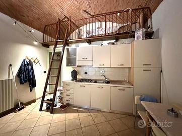 Tra gli elementi più caratteristici troviamo il soffitto a volte con mattoni a vista, che conferisce all'ambiente un'atmosfera calda e ricercata, perfetta per chi apprezza il fascino delle finiture storiche.