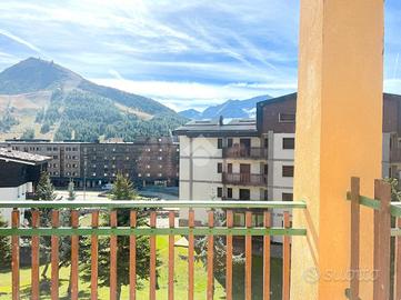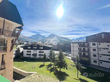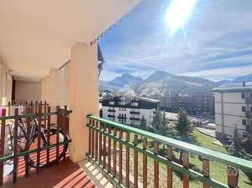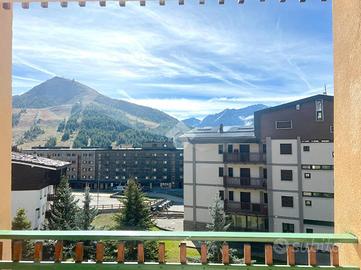 SESTRIERE - Inserito al secondo piano del condominio denominato 'Sporting' posto in posizione soleggiata e comoda al centro del paese. Proponiamo appartamento con vista panoramica e balcone coperto. L'ingresso all'appartamento avviene su di un corridoio che separa la zona giorno dal bagno. Il soggiorno è arredato con una cucina lineare, letto a castello a scomparsa e divano letto matrimoniale. Il bagno è dotato di doccia.
