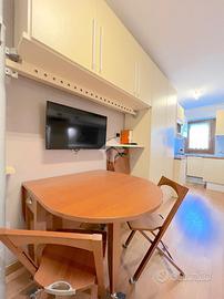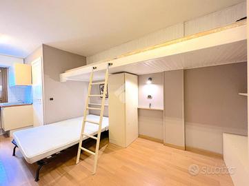SESTRIERE - A pochi passi dal centro e comodo ai servizi principali. L'ingresso avviene direttamente sul soggiorno dove troviamo un divano letto matrimoniale, due letti sul soppalco ed un ampio armadio. La cucina è dotata di lavastoviglie, piano cottura elettrico e forno a microonde. Il bagno finestrato è dotato di ampio box doccia e termoarredo. La soluzione si completa con un posto auto.