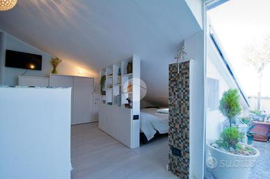 In un residence con piscina situato a Lugana di Sirmione, immerso nel verde e a soli 150 metri dal lago e dai principali servizi, è in vendita un delizioso e luminoso monolocale con terrazza abitabile e scorcio di vista lago. L'appartamento, situato al terzo e ultimo piano, offre un comodo ingresso, un soggiorno con cucina a vista, una funzionale separazione che delimita la zona notte con letto matrimoniale e un bagno finestrato completo di doccia. Una portafinestra conduce a un'ampia terrazza pavimentata, da cui è possibile godere di un piacevole scorcio di vista lago. Questa soluzione rappresenta un'opportunità ideale sia per chi desidera una seconda casa per le vacanze, sia come investimento destinato alla locazione.