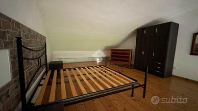 Tramite una comoda scala in legno elegante e moderna raggiungiamo la zona notte che è composta da una camera da letto con soffitto a volta, che offre un'atmosfera intima e romantica a questo ambiente.