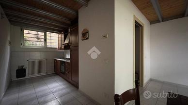 La cucina abitabile, in perfetta continuità con il salottino, è funzionale e accogliente. Rimane leggermente distaccata ma allo stesso crea un effetto open space, aperto e funzionale, sulla zona giorno.