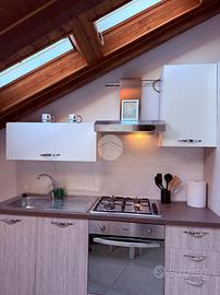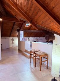 L'appartamento è composto da un unico ampio locale dove troviamo la zona soggiorno caratterizzata da un bellissimo camino, una cucina a vista, una zona notte e un bagno con la doccia.
