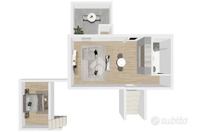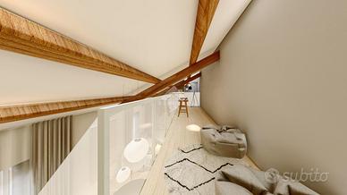 Attraverso una comoda scala si accede al soppalco, progettato fin dall inizio per essere adibito a camera da letto, un ambiente studiato per valorizzare al meglio ogni metro quadrato con stile e funzionalità.