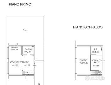 L'immobile si compone come segue: zona giorno con angolo cottura (30mq), bagno (4,22mq), soppalco con zona notte (7,8mq) e ripostiglio.