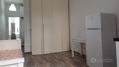 Ristrutturato ed arredato (su richiesta corredato) ambiente unico 25 mq., con porta blindata, riscaldamento autonomo, semplice e funzionale con letto singolo e letto estraibile quindi anche matrimoniale.