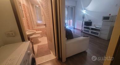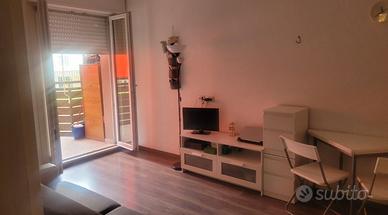 Soggiorno con divano letto matrimoniale e cucina , disimpegno, bagno nuovo ristrutturato con doccia e grande Terrazza