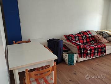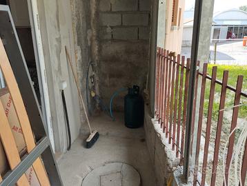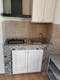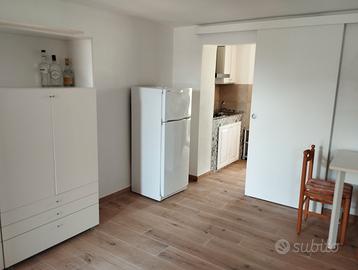 Monolocale arredato con zona cottura separata, servizio, piccolo portico davanti e dietro e piccolo giardino/orto