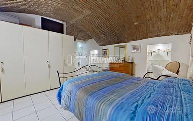 L'appartamento posto al piano terra in un piccolo contesto di corte, PRIVO DI SPESE CONDOMINIALI, è così disposto: ingresso su luminosa zona giorno, bagno finestrato con box doccia. Tramite una scala interna in muratura arriviamo alla comoda taverna caratterizzata dal soffitto in mattoni a vista.