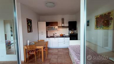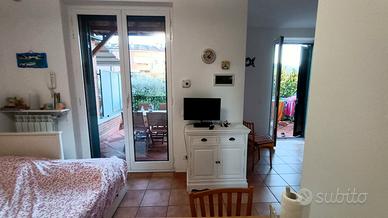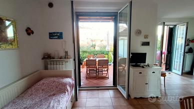Luminoso monolocale con terrazza e giardino a Sarzana, dotato di posto auto privato, a 5 minuti a piedi dal centro storico e dalla stazione, si affitta per periodi brevi (minimo una settimana).