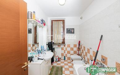 Proseguendo verso la zona servizi, troviamo un antibagno spazioso, attrezzato con una pratica armadiatura a muro su misura, fondamentale per l'organizzazione della casa e il cambio stagione. Il bagno, ampio e funzionale, è finestrato, un dettaglio non scontato nei monolocali che assicura luminosità e un'aerazione naturale ottimale.