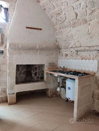 La casetta indipendente è dotata di camino tradizionale, angolo cottura, alcova letto con piccolo soppalco, e bagnetto tradizionalmente ricavato nell'alcova