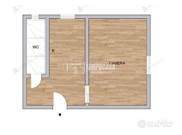 L'appartamento si presenta con una distribuzione funzionale e intelligente degli spazi: ingresso su cucina semi abitabile, camera da letto matrimoniale, e bagno finestrato con box doccia.