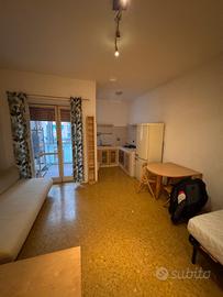 Monolocale in affitto con piccolo soggiorno con angolo cottura, bagno e ripostiglio, arredato, adatto esclusivamente per persona singola o coppia senza figli.