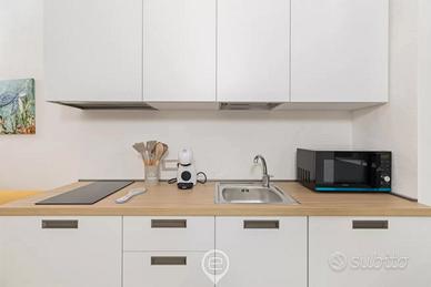 L'immobile è composto da un unico ambiente con zona living e angolo cottura attrezzato, area notte con letto matrimoniale e bagno privato completo di doccia e lavatrice. L'alloggio è dotato di Wi-Fi e arredi funzionali, pensati per soggiorni temporanei.