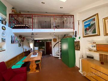 L'immobile, situato in posizione collinare e panoramica, si sviluppa in un unico ambiente accogliente con angolo cottura e un elegante camino decorato con fasce in rame, che dona calore e unicità all'ambiente. Un pratico soppalco ospita il bagno e una zona armadi, sfruttando in modo intelligente gli spazi verticali.