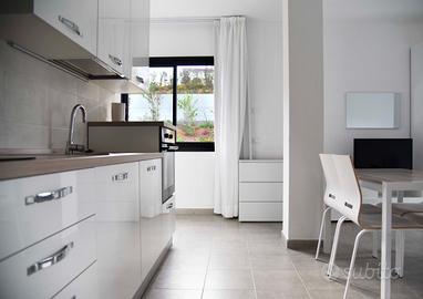 Completamente arredato a NUOVO con design moderno e sistema di condizionamento di nuova generazione, è composto da un ampio soggiorno con angolo cottura e bagno.