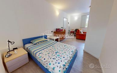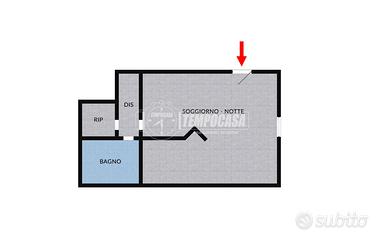 - ingresso su zona soggiorno/letto (22,45 MQ) con angolo cottura (6,44 MQ) separati tra loro da una parete in cartongesso