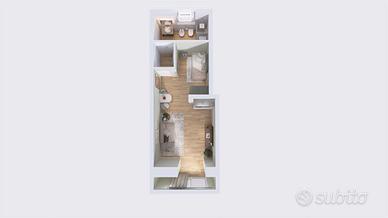 Il monolocale verrà consegnato completamente ristrutturato e rifinito con materiali di pregio e dal gusto moderno e si compone internamente da un ampio vano abitabile con angolo cottura a vista ed elegante bagno con impianto doccia.