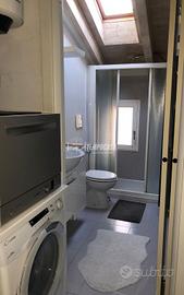 Il cucinotto separato è completo di tutti gli elettrodomestici necessari per un soggiorno pratico e confortevole, mentre il bagno finestrato, dotato anch'esso di Velux, garantisce luminosità e ariosità.