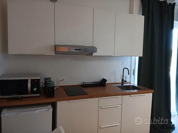 Monolocale arredato con cucina (frigorifero, bollitore, microonde, macchina caffe), televisore, un bagno con asciugacapelli. Pulizie e cambio biancheria settimanale incluse. Utenze e wifi inclusi.