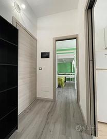 Affitto luminoso monolocale di complessivi 28 mq, con angolo cottura separato e bagno, piccola veranda chiusa, appena ristrutturato, piano primo di una casa indipendente; arredato, dotazioni risparmio energetico, dotato di TV 43 pollici, lavatrice, aria condizionata, scaldino a gas per l'acqua calda.