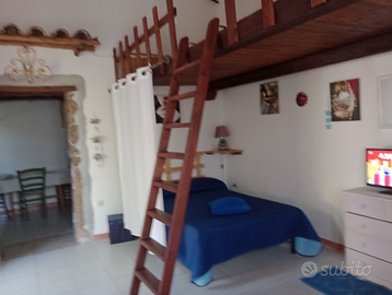 Disponibile da subito per brevi periodi monolocale con zona giorno e angolo notte cucinotto bagno veranda coperta giardino posto macchina aria condizionata lavatrice TV 65 per notte