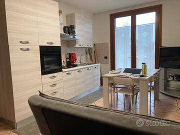 In piccola palazzina appartamento arredato posto al piano terra con giardino privato , sala con angolo cottura , studio , 1 matrimoniale , bagno oltre a garage ed ampio locale cantina . Libero entro fine gennaio 2026 .