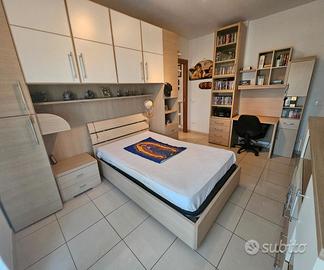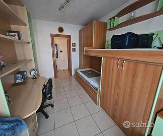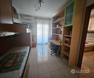La zona notte offre una camera matrimoniale, una camera e una cameretta con balcone, ideali per chi desidera comodità e funzionalità. Non mancano un pratico ripostiglio e doppi bagni.