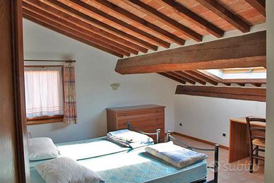 Nel corso principale del centro storico di Montepulciano, si propone la vendita di bellissimo attico su due livelli di complessivi mq. 260, ubicato in piccola palazzina dalla quale si gode una bellissima vista sulla cittadina e sul paesaggio circostante. Al primo livello troviamo un ingresso che conduce al soggiorno, sala da pranzo con angolo cottura, tre camere di cui una con caminetto, studio, bagno finestrato con doccia, lavanderia e due ripostigli. Secondo livello composto da soggiorno con possibilità di ricavare un angolo cottura, due camere e bagno finestrato con doccia. Cantina pertinenziale. L'abitazione presenta le tipiche caratteristiche dello stile toscano, come i solai in travi di legno, e rappresenta un ottima soluzione per chi vuole realizzare una struttura ricettiva. Subito disponibile.