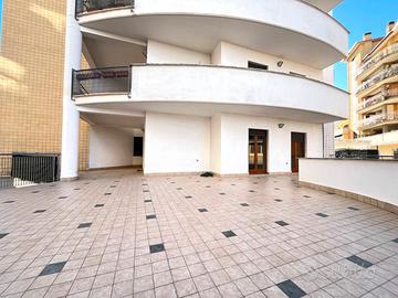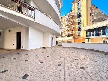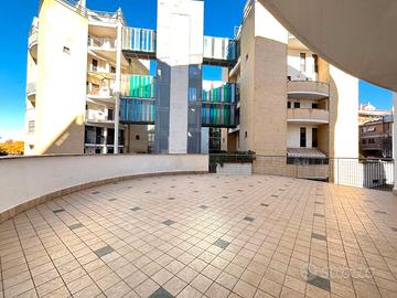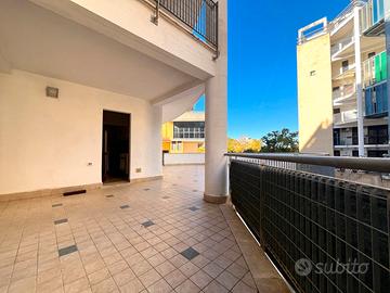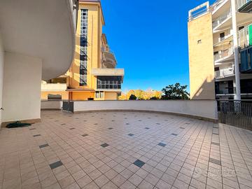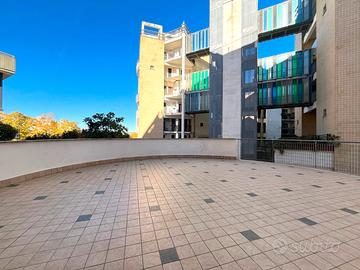 L'appartamento si apre su un comodo soggiorno, che funge da punto centrale dell'abitazione, separando la zona giorno dalla zona notte e offrendo accesso a un ampio terrazzo di 90mq, vero elemento distintivo della casa.