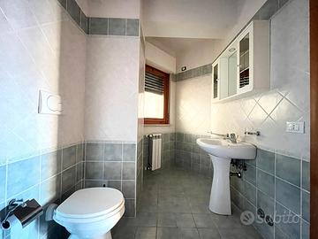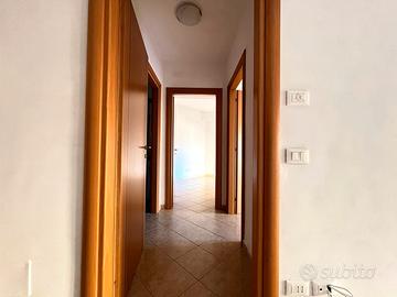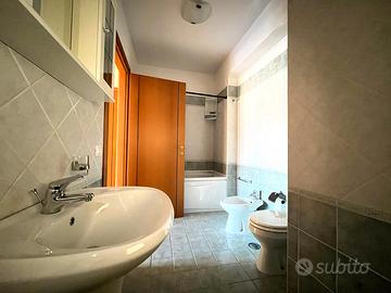 Alla destra del soggiorno si trovano una cucina abitabile con accesso diretto al terrazzo, un comodo ripostiglio e un primo bagno finestrato dotato di box doccia. Sul lato sinistro, invece, si sviluppa la zona notte, composta da due ampie camere matrimoniali, di cui una con accesso al terrazzo, e da un secondo bagno finestrato completo di vasca idromassaggio.