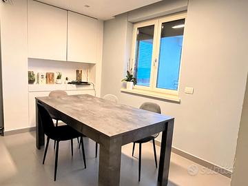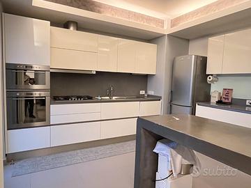 Recentemente ristrutturato e finemente rifinito, l'appartamento è termo autonomo e viene venduto completo di cucina (Veneta Cucine). La disposizione interna è la seguente: ingresso in ampio salone con cucina a vista e accesso al balcone panoramico con suggestivo affaccio su Ischia; tre camere da letto di cui una con annessa cabina armadio e doppi accessori.L'immobile si distingue anche per la presenza di due bagni moderni, uno dotato di pratica doccia e l'altro di confortevole vasca, entrambi rifiniti con pregiata resina che conferisce un tocco di design contemporaneo. Il corridoio, funzionale e raffinato, è impreziosito da un'ampia armadiatura a muro che offre soluzioni di contenimento ed eleganza.