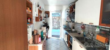 Montevaccino in zona residenziale proponiamo in vendita in piccola palazzina ampio appartamento due stanze ottimamente esposto. L'unità abitativa è composta di ingresso, soggiorno, cucina abitabile, cortile terrazzato con orto + secondo cortile, corridoio, due stanze da letto, bagno finestrato e scala interna collegata a spaziosa cantina utilizzabile come locale hobbies/lavanderia.