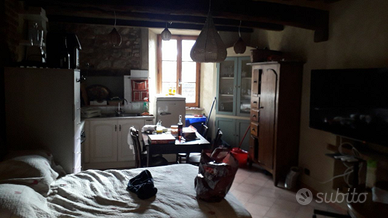 Sono in tutto 35 metri , più 35 metri di giardino piastrellato ,più 35 metri di garage ,con possibilità di collegare al piano superiore e quindi avere 2 locali di 35 metri quadri, più il giardino di 33 metri quadri.il camino e' chiuso ed ha le ventole per scaldare