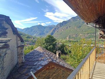 Sulla prima collina di Montjovet, nella caratteristica e tranquilla frazione di Vignolaz, proponiamo in vendita una casa semindipendente disposta su più livelli, composta da due alloggi distinti, un ampio terrazzo panoramico e un fienile al sottotetto con interessanti potenzialità di recupero.