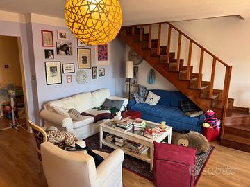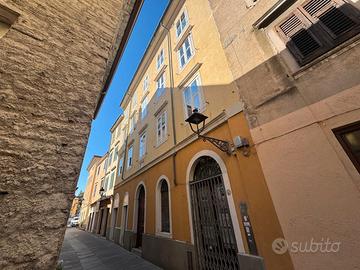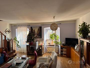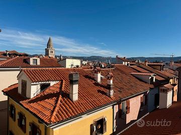 In bel palazzo nel cuore del centro storico di Muggia, a pochi passi dal mare e con scorcio aperto, luminoso appartamento bilivello composto da: ingresso, ampio salone, cucina abitabile e bagno completo con vasca e finestra; al piano superiore mansardato (con eventuale accesso indipendente) due camere e piccolo bagno con wc.